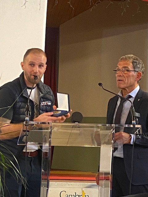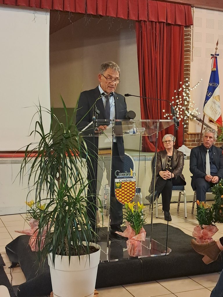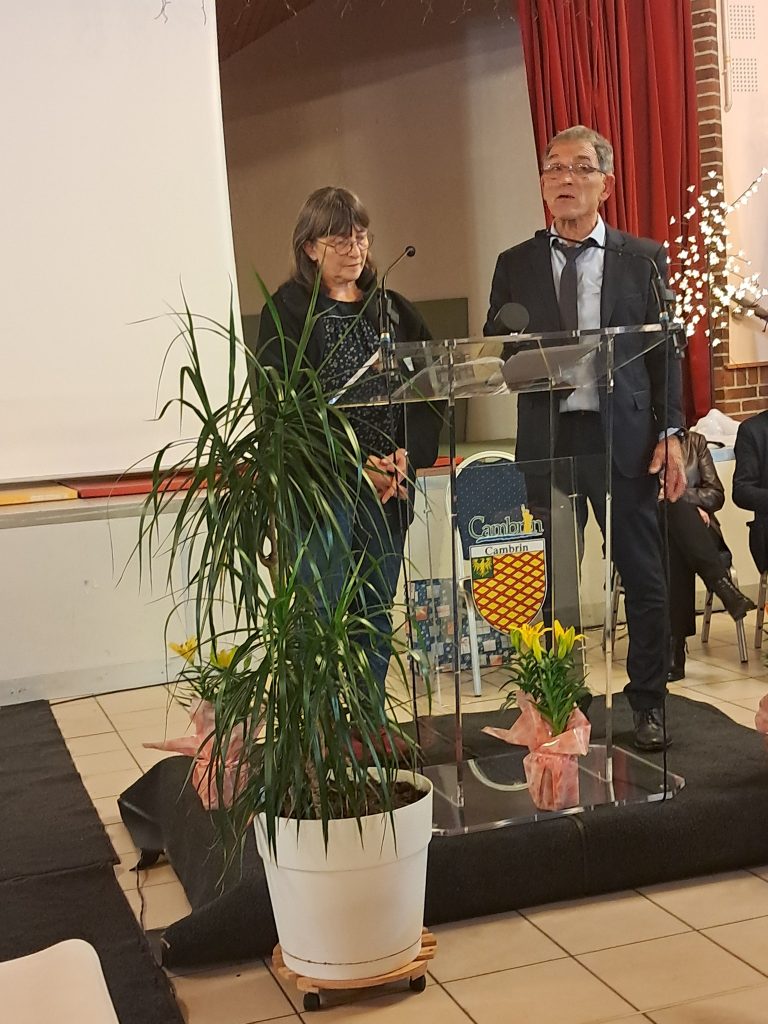 Il a ensuite mis à l’honneur Madame Corinne RUDOWICZ, vice-présidente du Conservatoire d’espaces naturels des Hauts-de-France au marais de Cambrin, Jean-Pierre PLADYS bénévole assidu au service de la municipalité et du Comité des fêtes, et Marvin LOISON qui a fabriqué la bière « la cambrinoise » au sein de sa microbrasserie située boulevard Louis Lesage mettant ainsi la commune en lumière, tous trois ont reçu la médaille de la ville ![]()